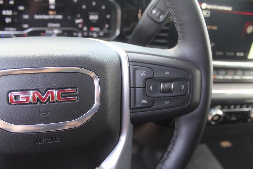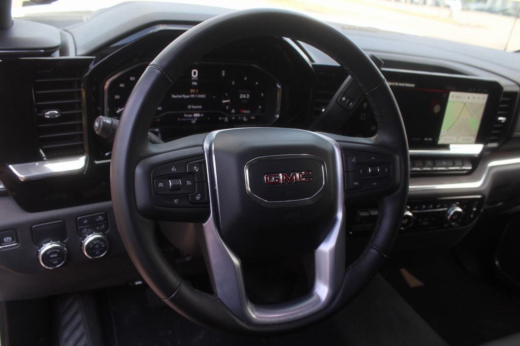 Summit White 2025 GMC Sierra 1500 SLT RWD 10-Speed Automatic EcoTec3 5.3L V8 10-Speed Automatic, Black Leather.