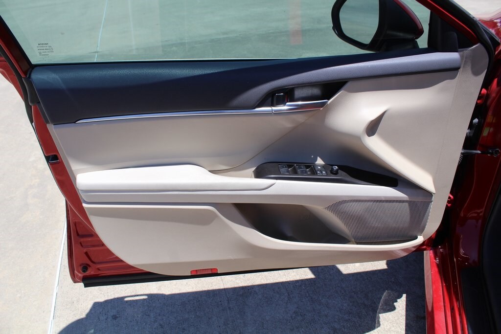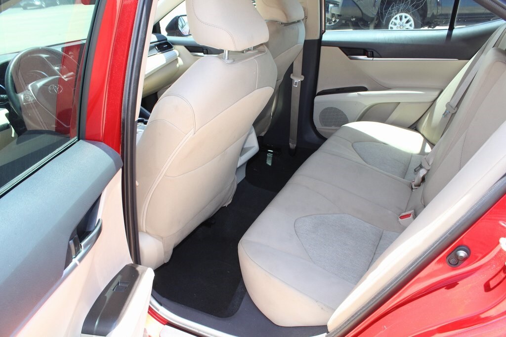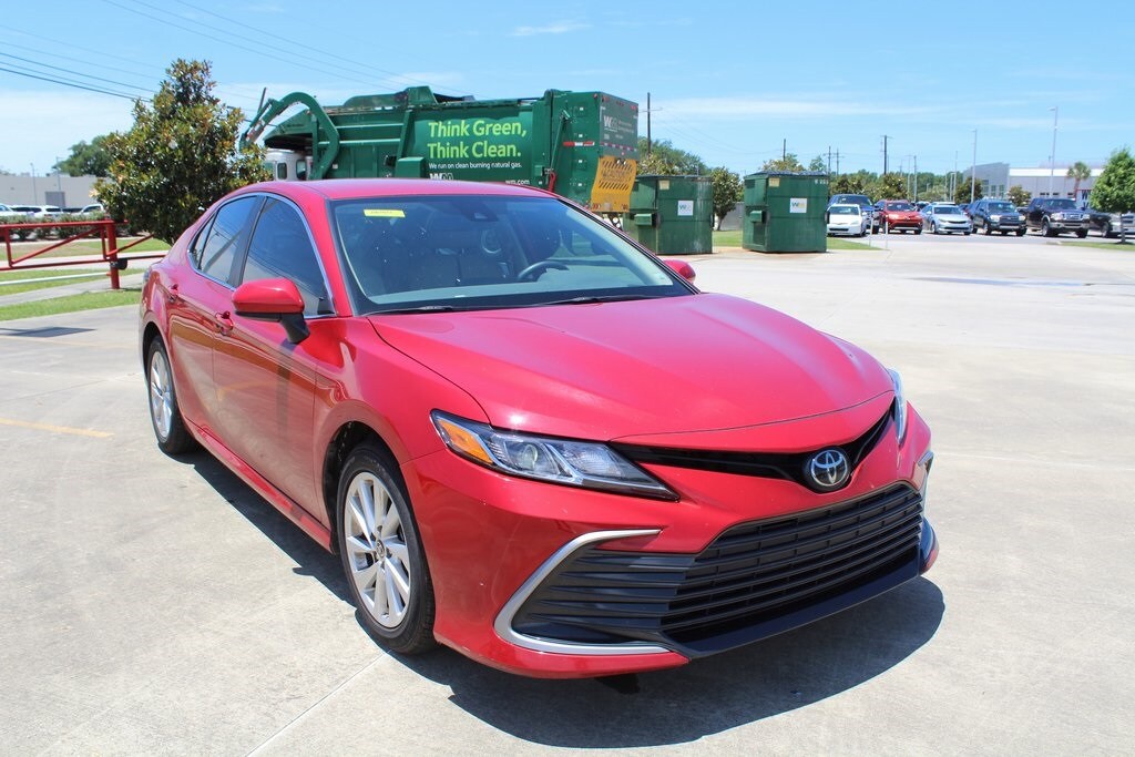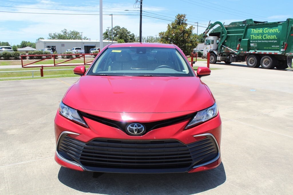 Supersonic Red 2023 Toyota Camry LE FWD 8-Speed Automatic 2.5L I4 DOHC 16V Macadamia w/Fabric Seat Trim.
