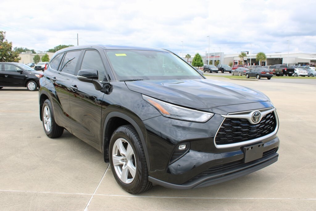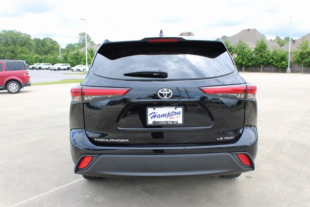 Midnight Black Metallic 2023 Toyota Highlander LE AWD 8-Speed Automatic 2.4L I4 PDI Turbocharged DOHC 16V LEV3-SULEV30 265hp AWD.
