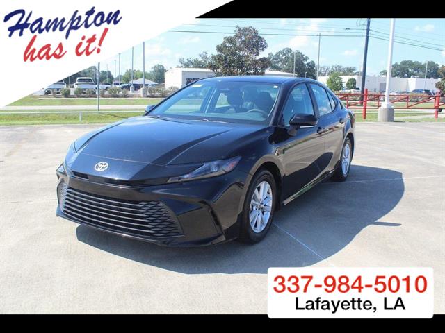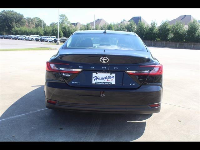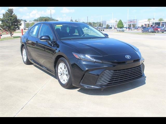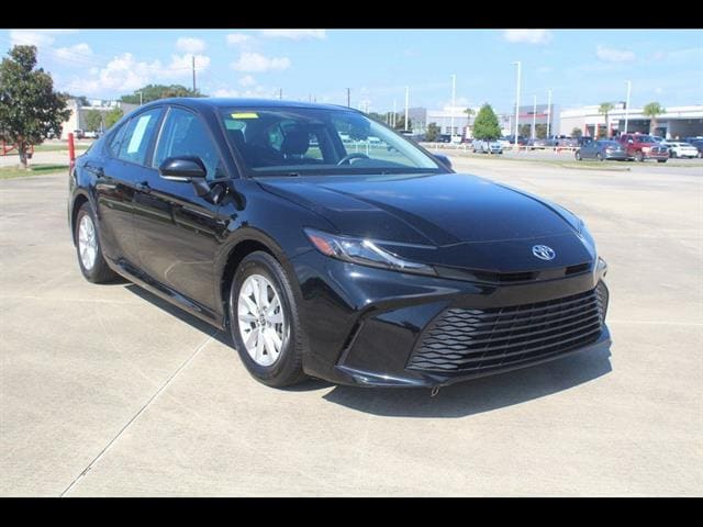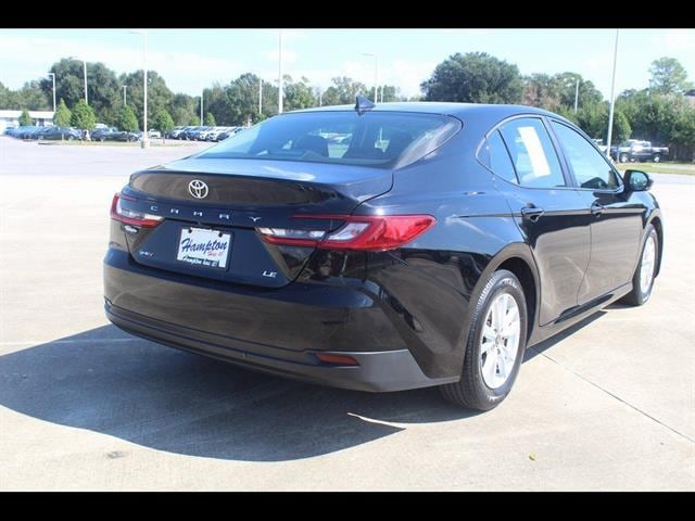Midnight Black Metallic 2025 Toyota Camry LE FWD eCVT 2.5L 4-Cylinder 16V DOHC 2.5L 4-Cylinder 16V DOHC, Black w/Fabric Seat Trim.53/50 City/Highway MPG